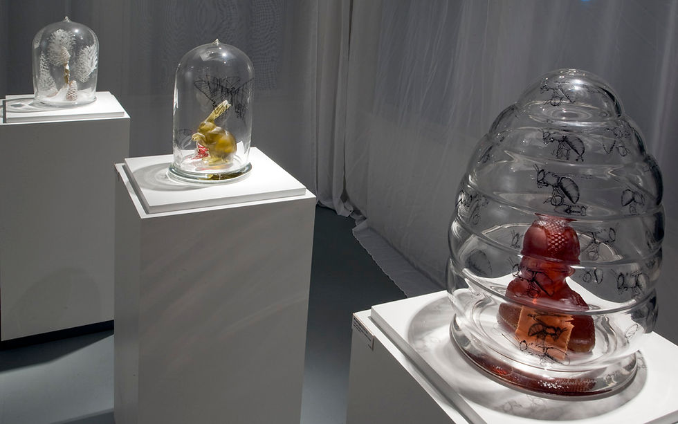 Natali Rodrigues (glass, drawings) resides in Calgary where she is Head of Glass Department at Alberta College of Art + Design. Born in Kenya to a German mother and Goan father she emigrated with her family to Canada in 1975, Rodrigues received her MA in Visual Arts at Canberra School of Art in Australia and her BFA from Alberta College of Art + Design. Her work can be found in private collections throughout Canada.